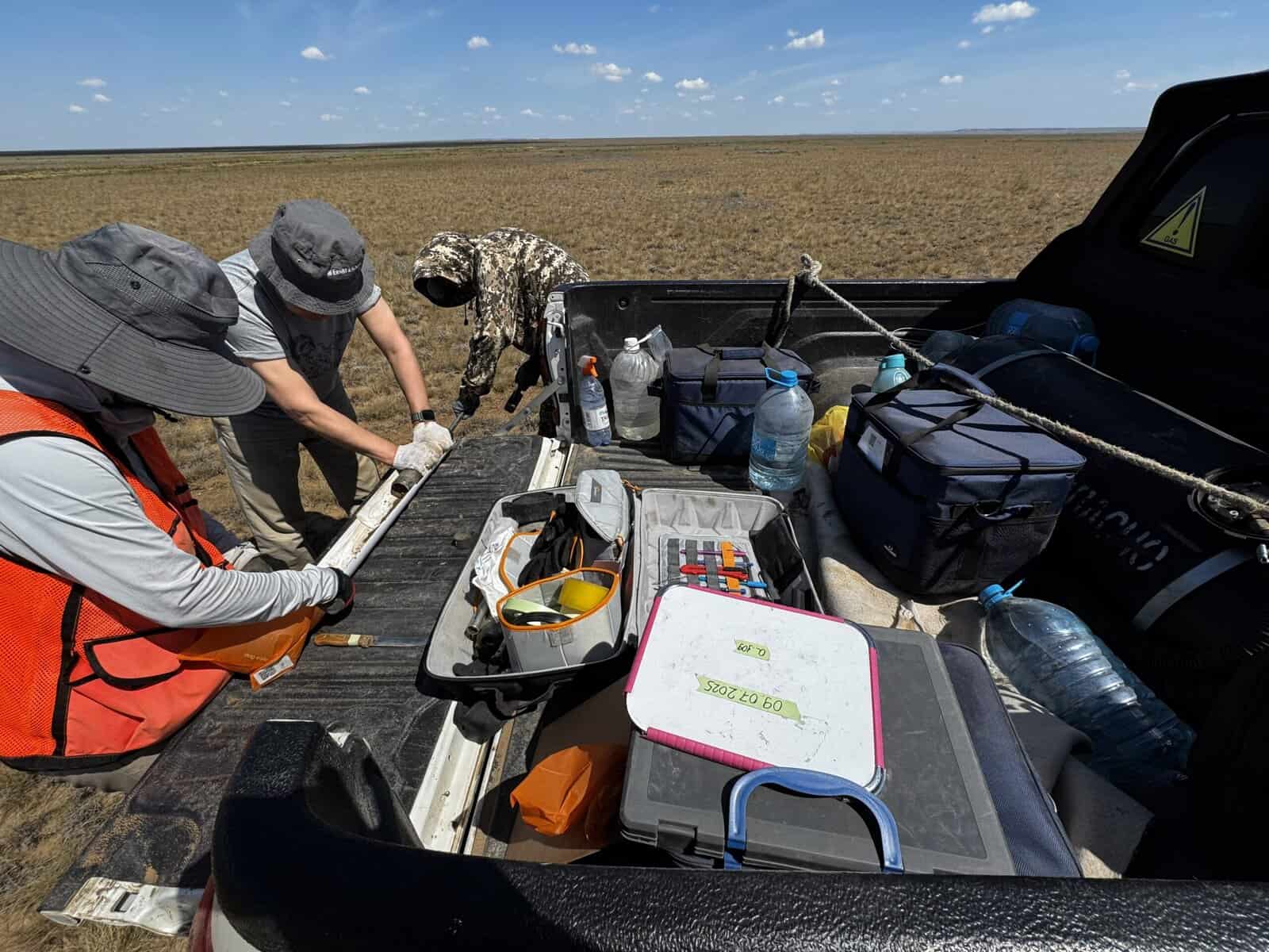 Image: rTek’s team conducting intact-core soil sampling in Aktobe Region